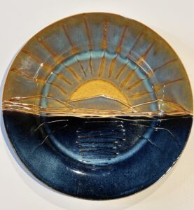 Cathy Green was introduced to clay in high-school in the basement of the old art museum in Grand Rapids in the min-1970’s She recalls that the teacher was eccentric and made us all fall in love with the medium. Green took it back up in 1993 and fell back in love with it all over again. She is enamored by nature and all her work features nature motifs.