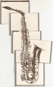 Julie Schwarz has created a symphony with her vintage Polaroid camera and new Polaroid film. We welcome you to our music room with one-of-a-kind collages and a variety of musical instruments and re-purposed instruments turned into home accessories.